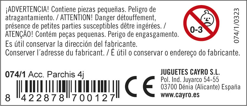 ACC. PARCHÍS 4 JUGADORES EN CAJA DE PLÁSTICO