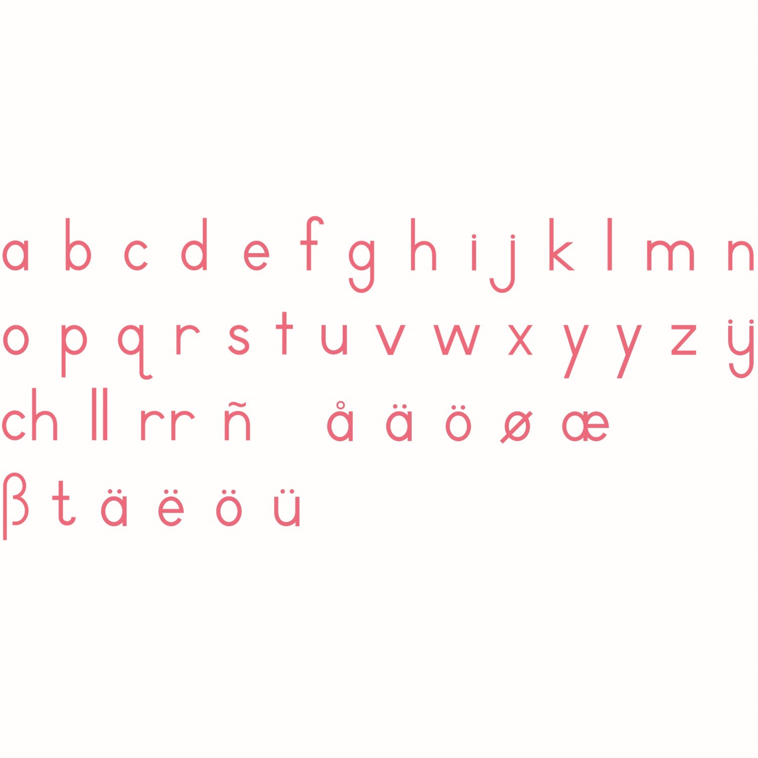 El alfabeto móvil pequeño Montessori es ideal para la construcción de palabras de fonogramas en 2 colores. La construcción de palabras de fonograma se presenta con letras negras y una segunda caja de letras rojas o azules. Las palabras se construyen con letras negras y el fonograma se resalta en letras rojas o azules. Incluye letras adicionales en español, nórdico y alemán.