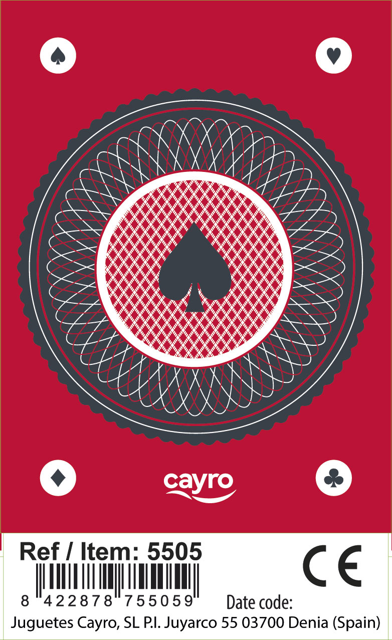 Baraja de poker 100% plástico. Dispone de cartas de 2 colores.