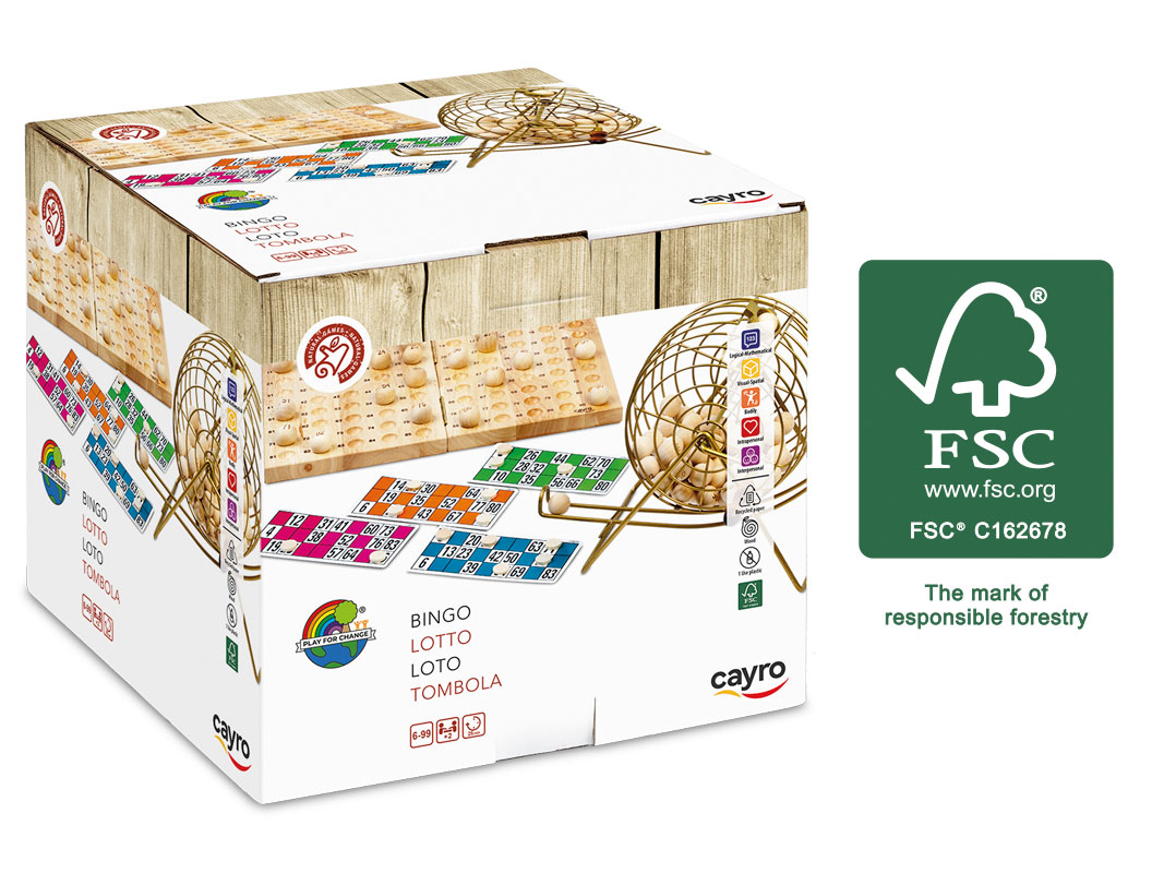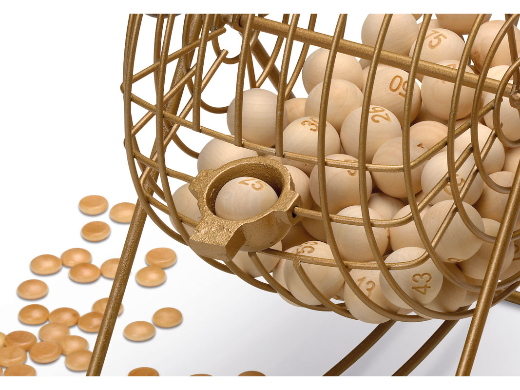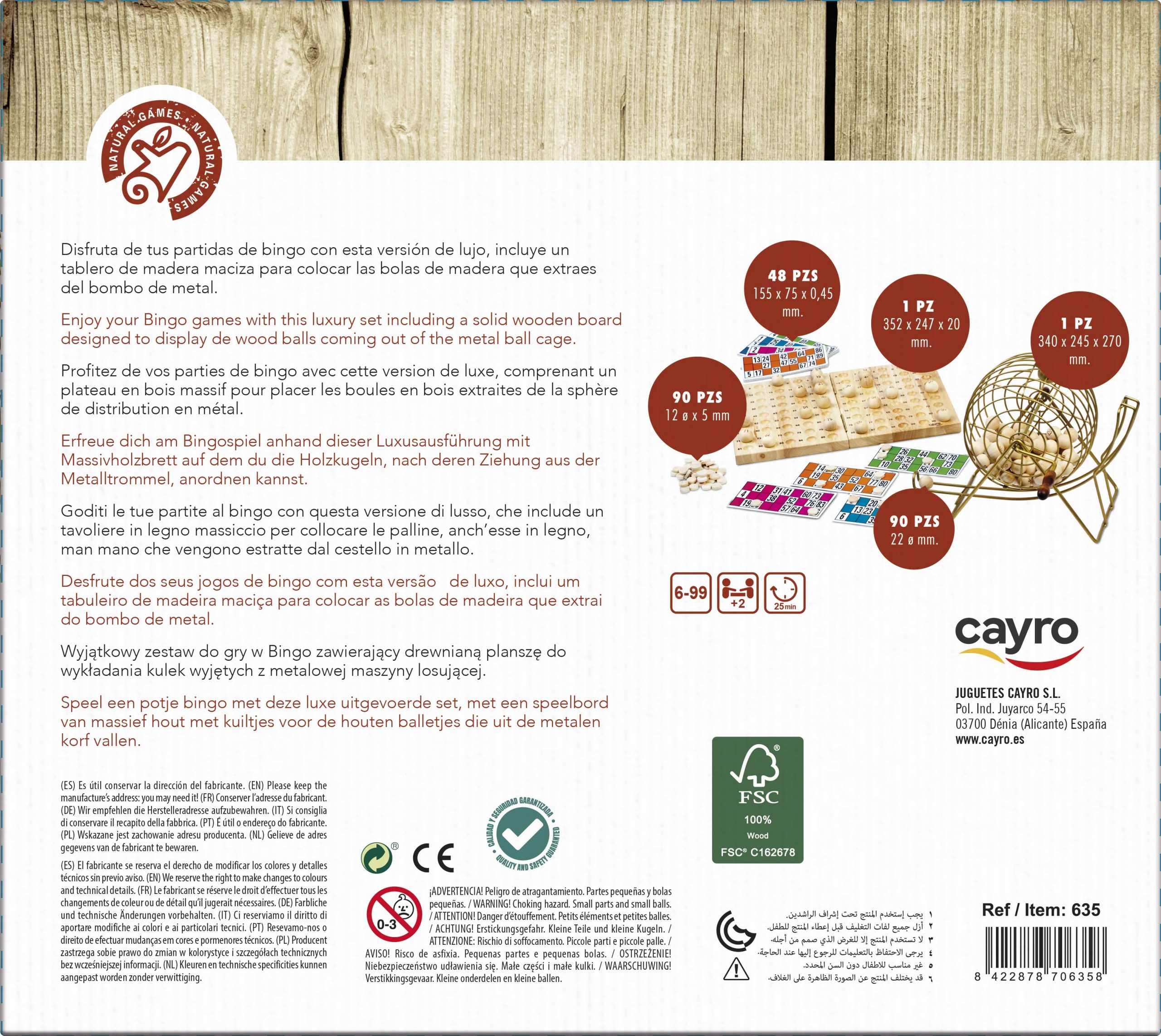 Disfruta de tus partidas de bingo con esta versión de lujo, incluye un tablero de madera maciza para colocar las bolas de madera que extraes del bombo de metal.