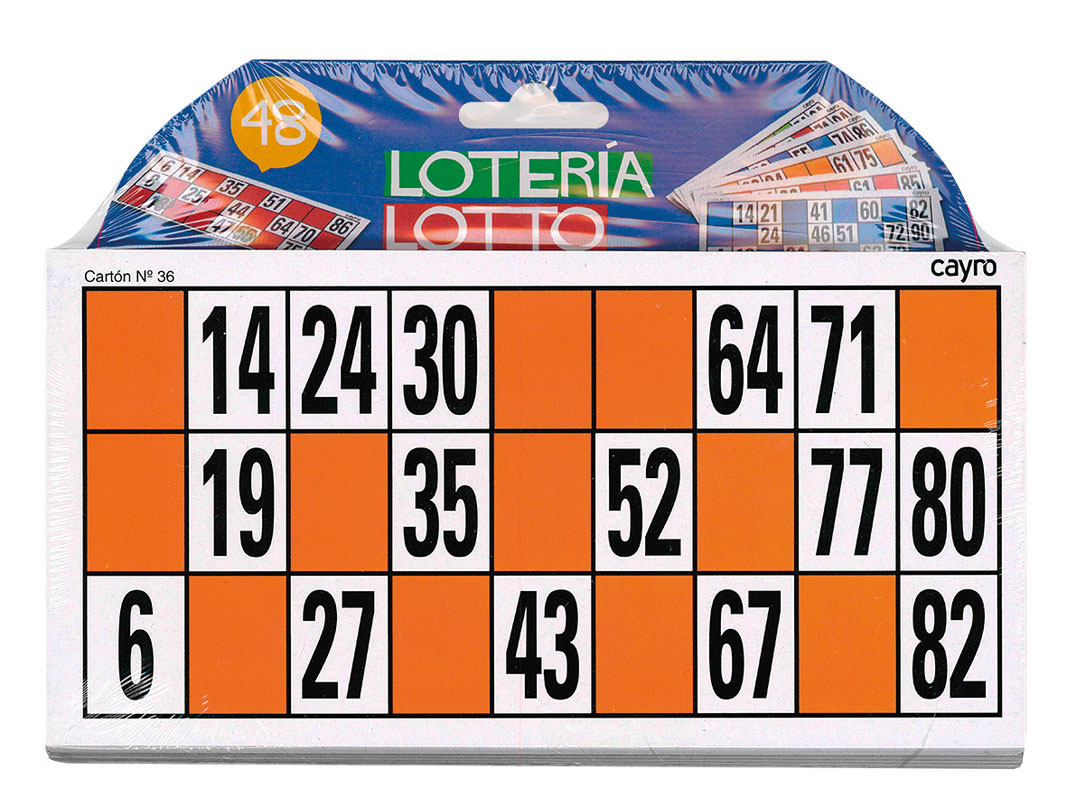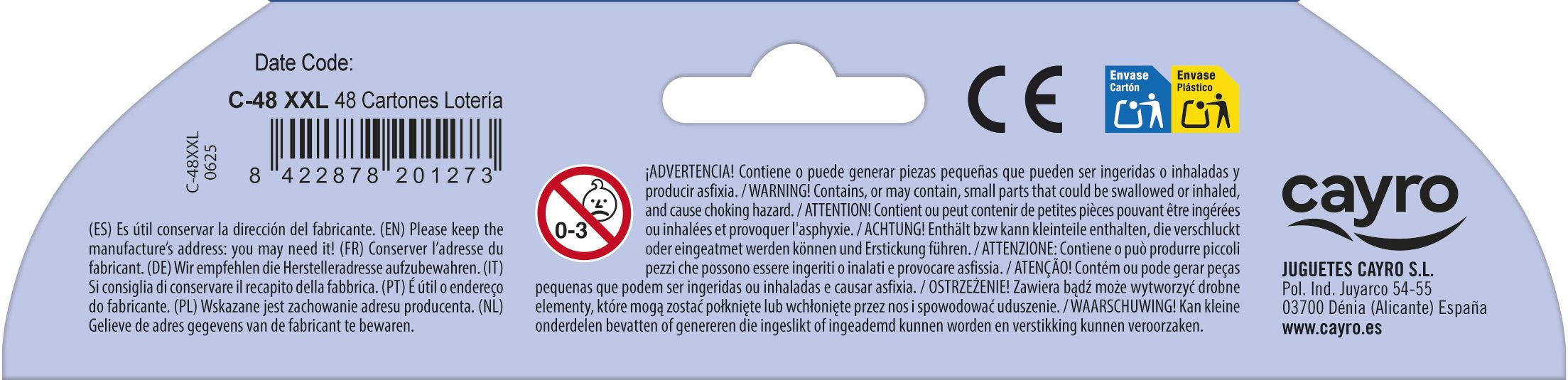 48 Cartones con los números impresos en un tamaño más grandes de lo habitual. El recambio perfecto para el juego de la lotería.