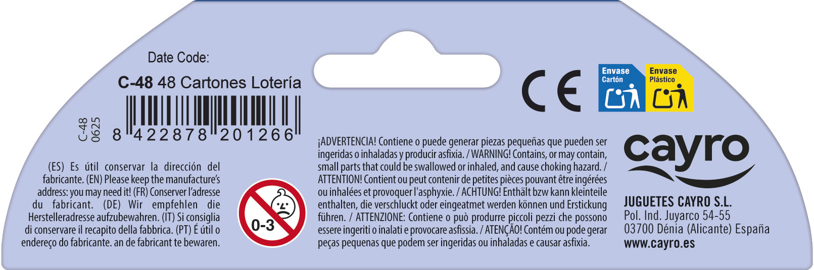 Paquete de 48 cartones de recambio para jugar al bingo.