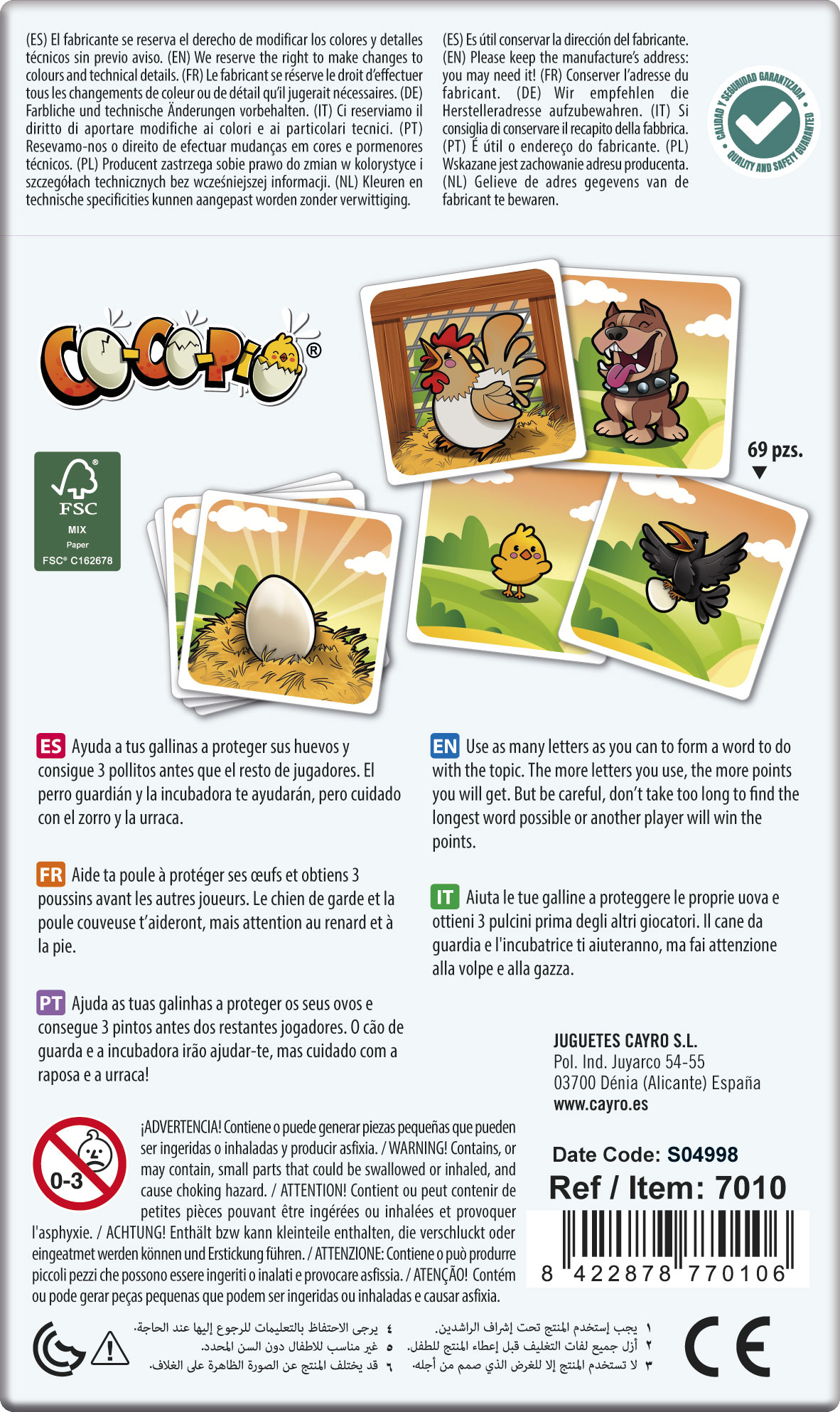 Co Co Pio es un juego de tarjetas en el que el objetivo es ser el primero en conseguir que tus gallinas tengan tres pollitos.