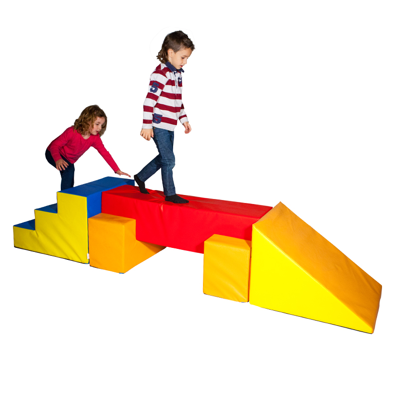 Combinando elementos y conjuntos todo es posible; gatear, mantener el equilibrio, deslizarse, transportar, subir, bajar y saltar por los diferentes circuitos que se pueden llegar a construir formando olas, rampas, escaleras…