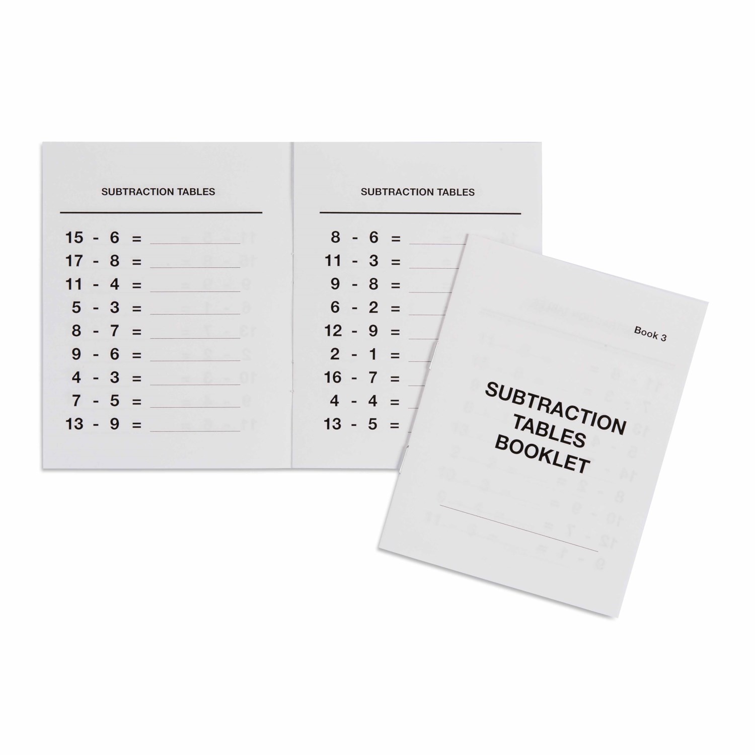 Un folleto con ecuaciones de resta aleatoria. Estos folletos fomentan una mayor práctica y repetición (40 folletos).