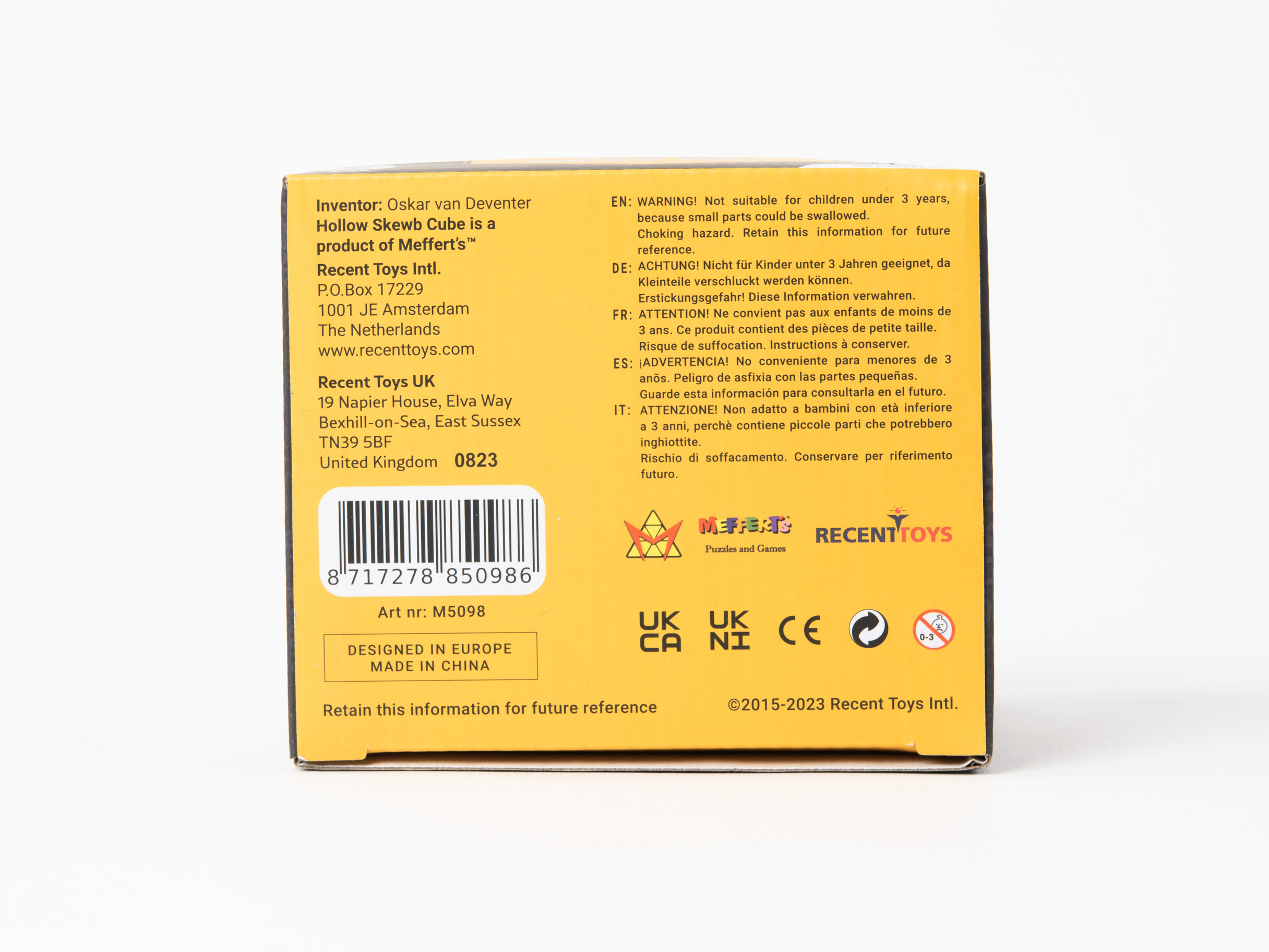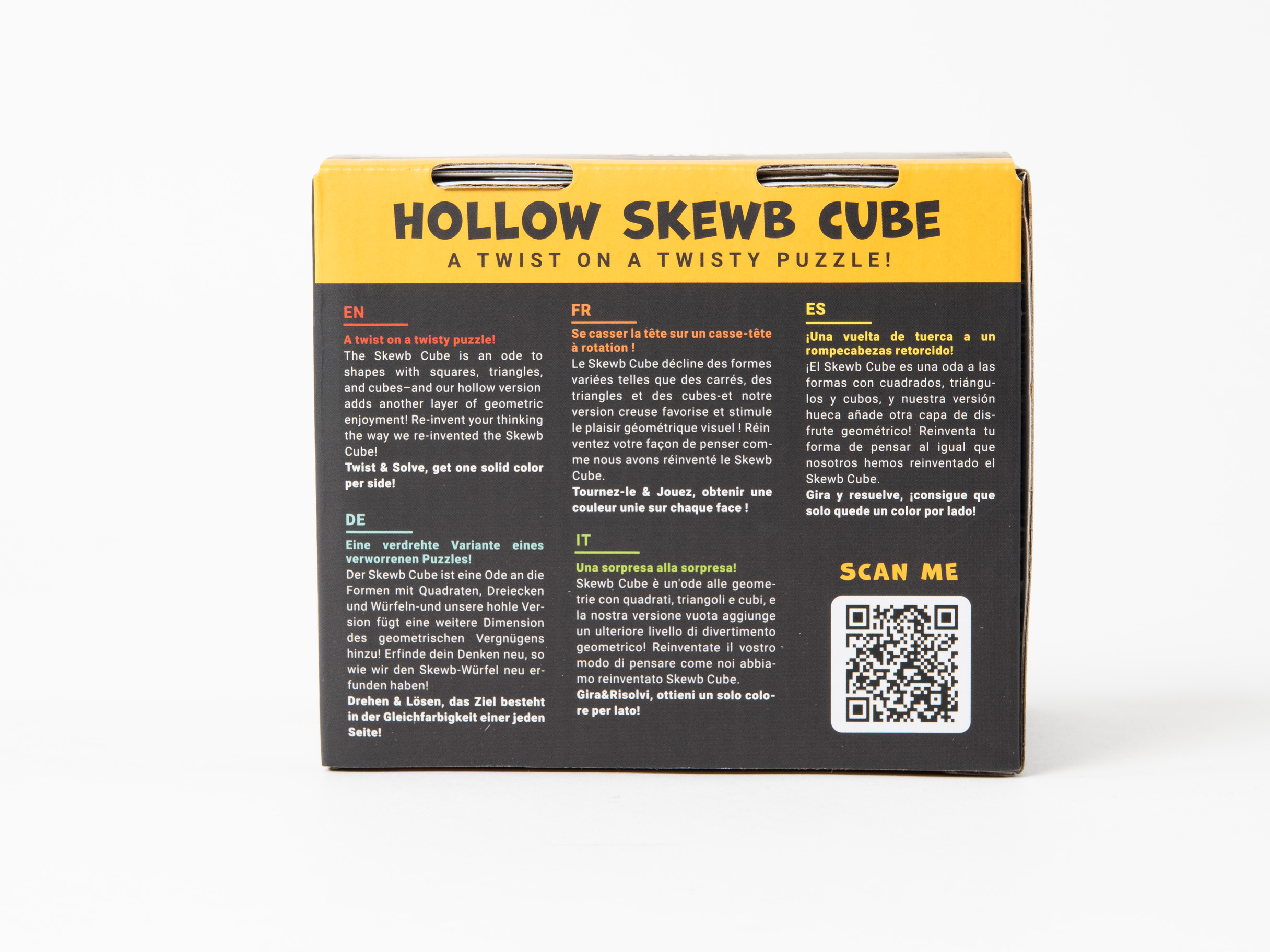 ¡El Skewb Cube es una oda a las formas con cuadrados, triángulos y cubos, y nuestra versión hueca añade otra capa de disfrute geométrico! Reinventa tu forma de pensar al igual que nosotros hemos reinventado el Skewb Cube.