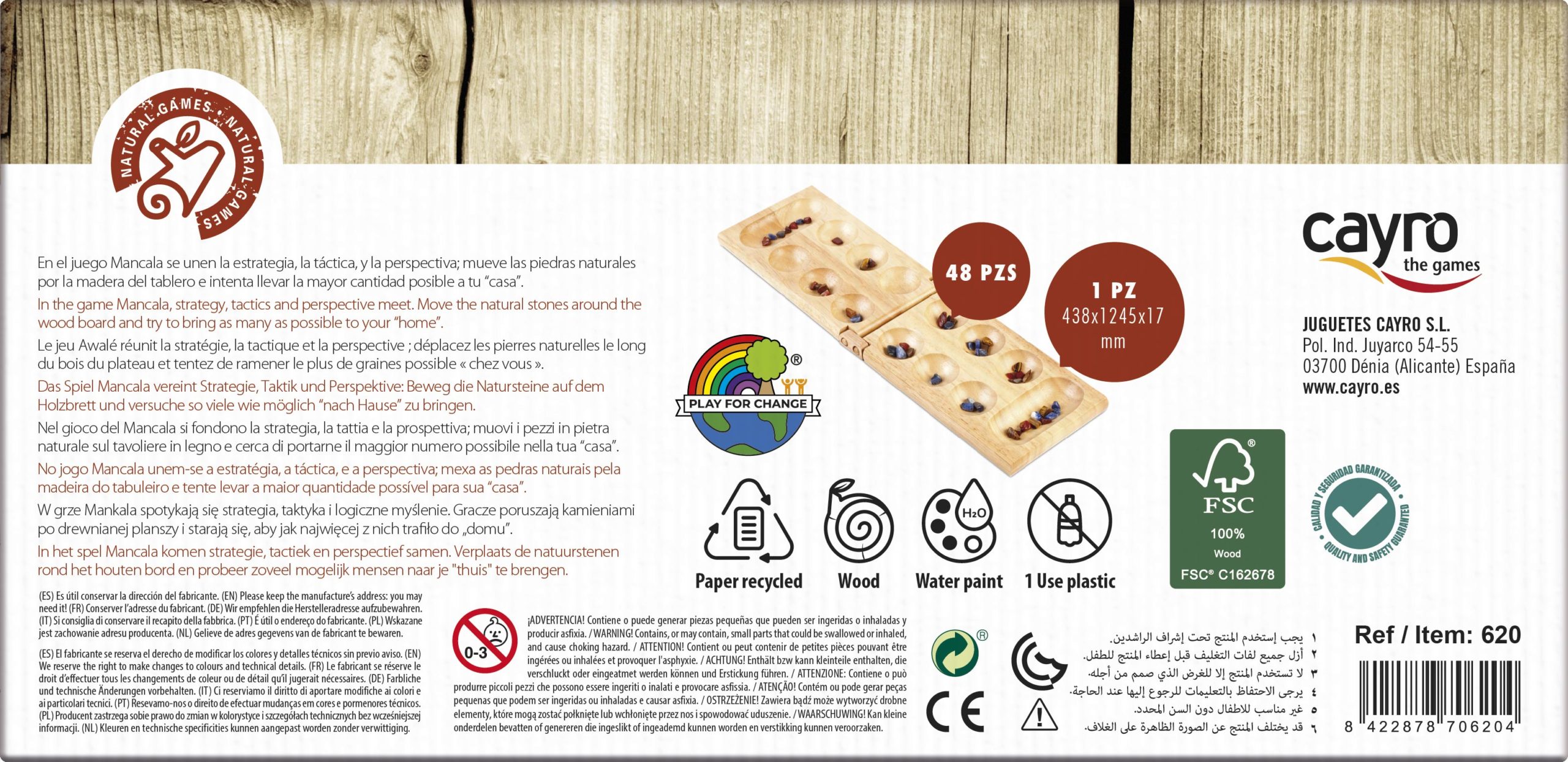 En el juego Mancala se unen la estrategia, la táctica, y la perspectiva; mueve las piedras naturales por la madera del tablero e intenta llevar la mayor cantidad posible a tu “casa”.