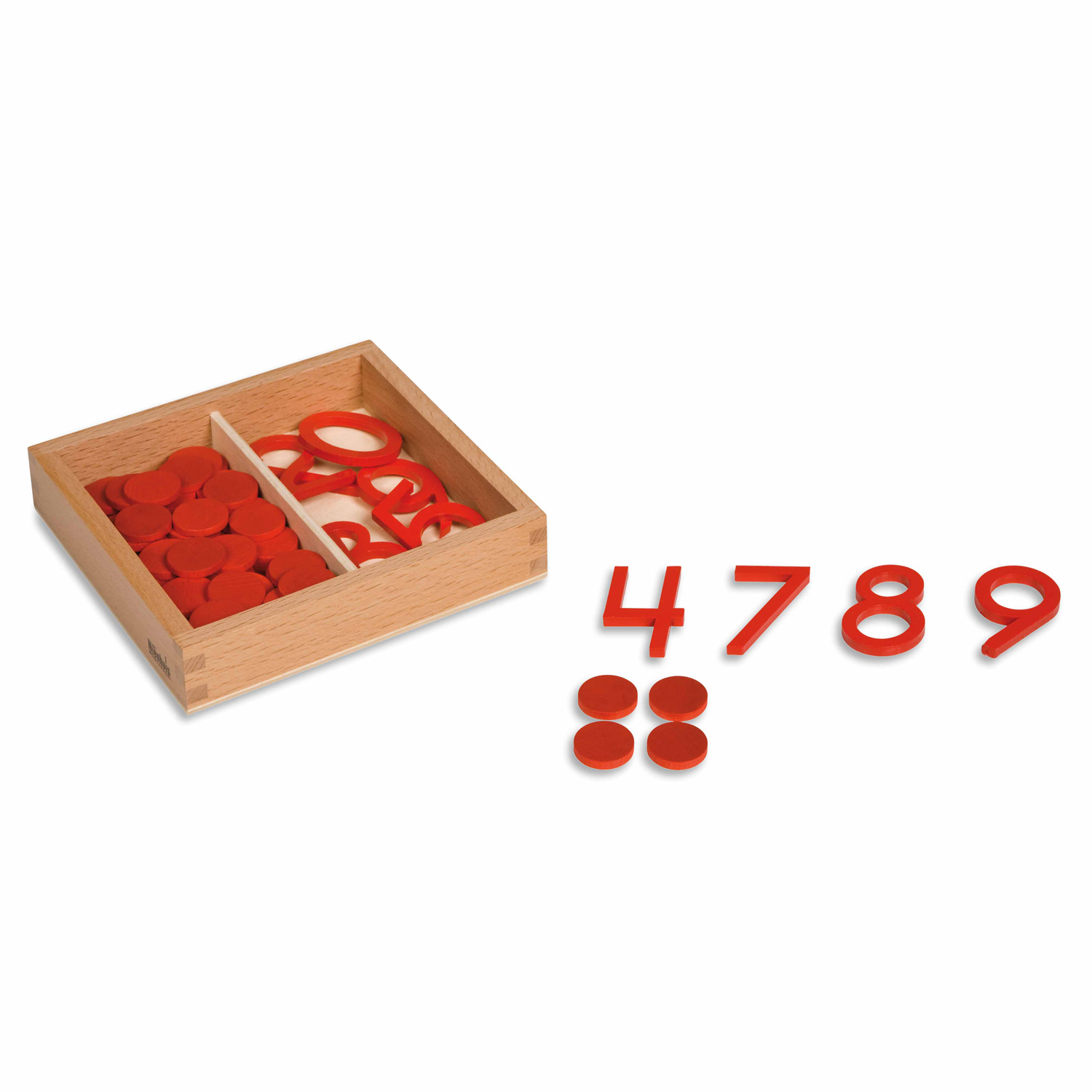 En la etapa final del trabajo numérico 1-10, el niño aplica sus habilidades para asociar cantidad y símbolo al identificar y colocar los números en su secuencia adecuada y luego asociar la cantidad correspondiente de contadores debajo de ellos.