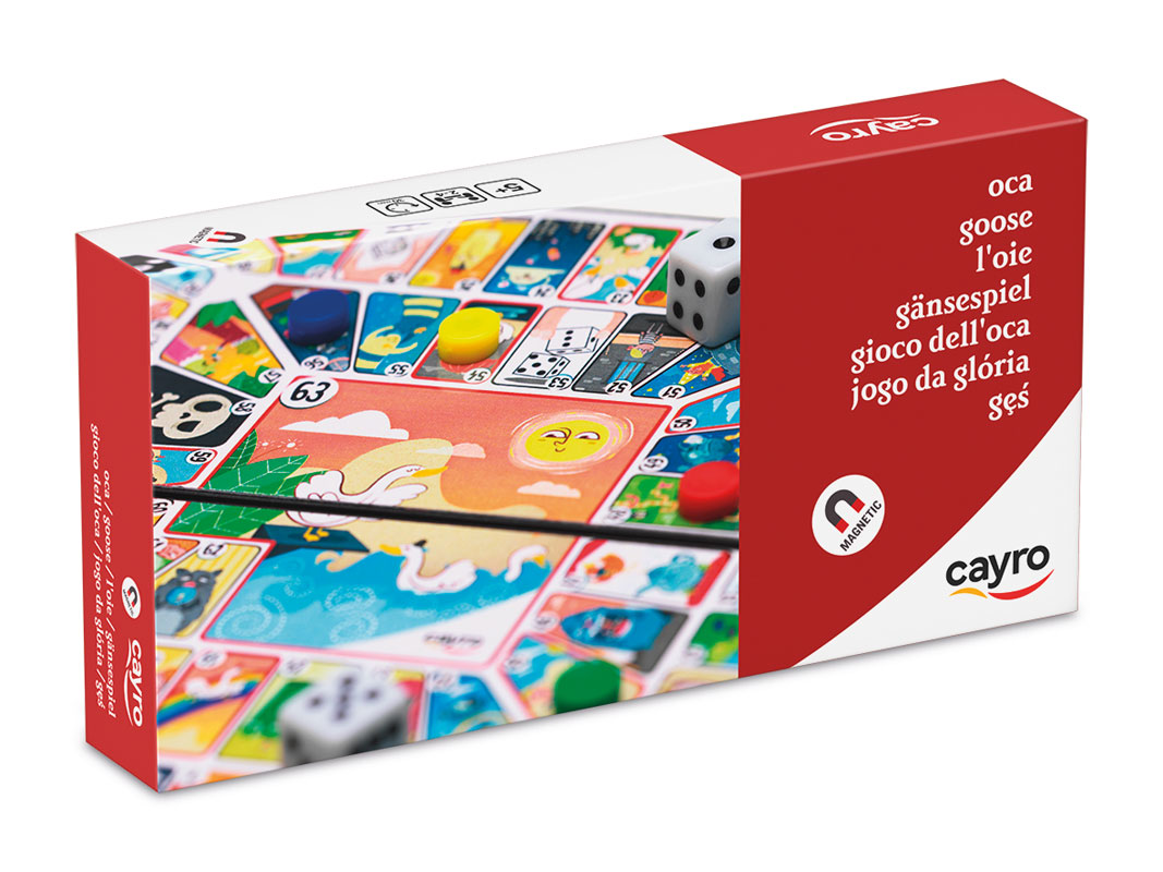 Esta es una versión magnética y de viaje, también por su tamaño, del juego de la oca. El tablero es plegable para llevártelo a cualquier lugar.