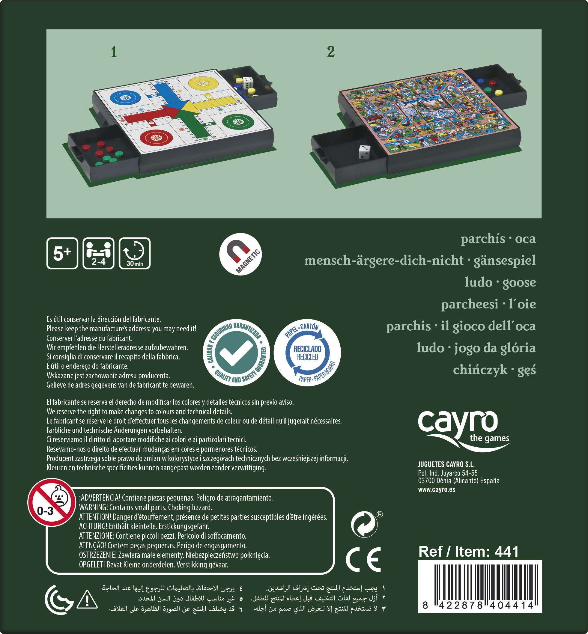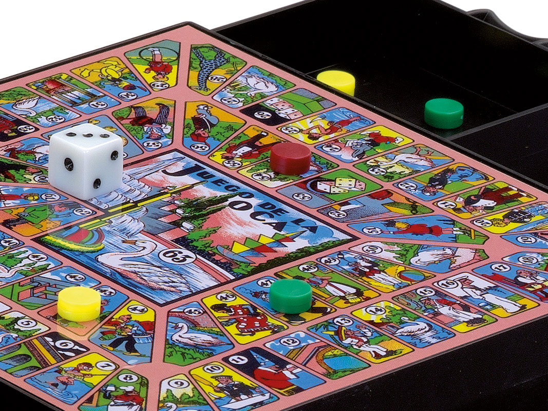 Juega al parchís o a la oca, solo tendrás que colocar el tablero por el lado que elijas y sacar las fichas correspondientes del cajón, incorporado en el tablero.