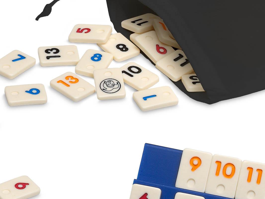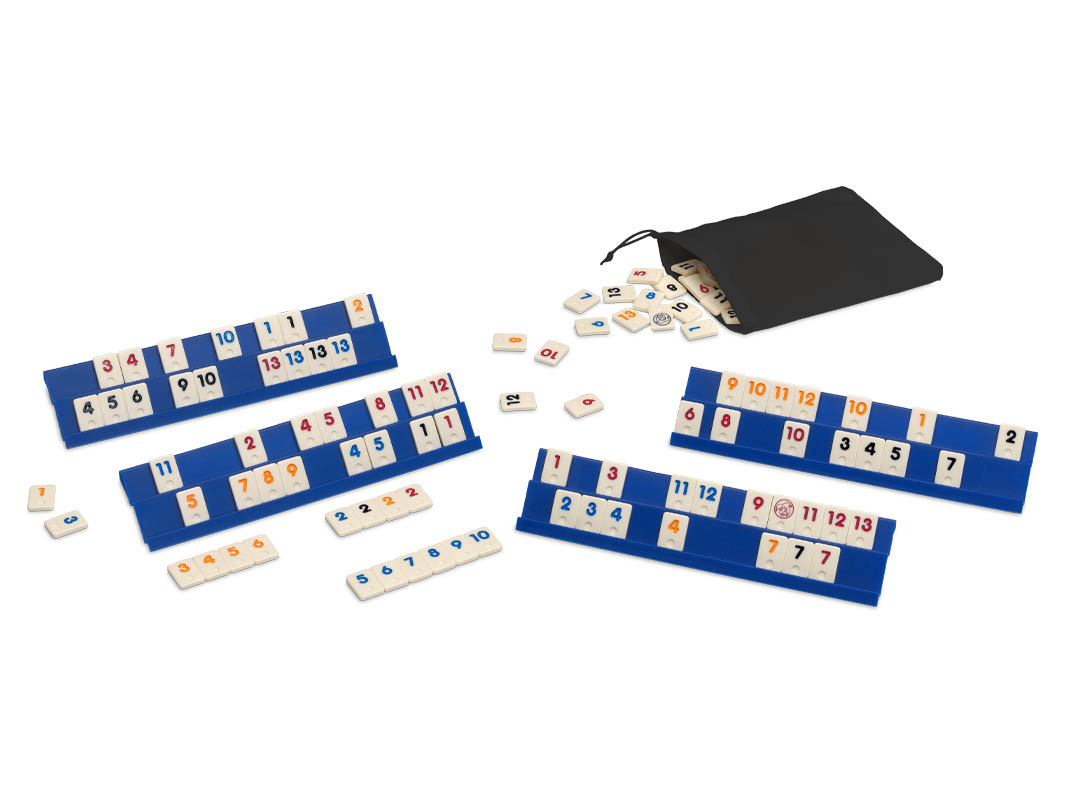 Simple y apasionante juego en el que cada jugador deberá combinar sus fichas, haciendo grupos de un mismo número en diferentes colores o escaleras de un mismo color para conseguir quedarse sin fichas. Versión hasta 4 jugadores.