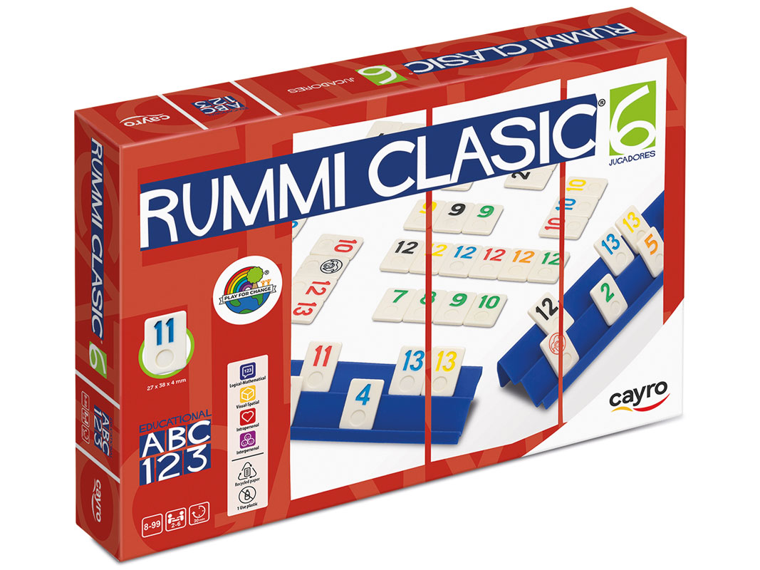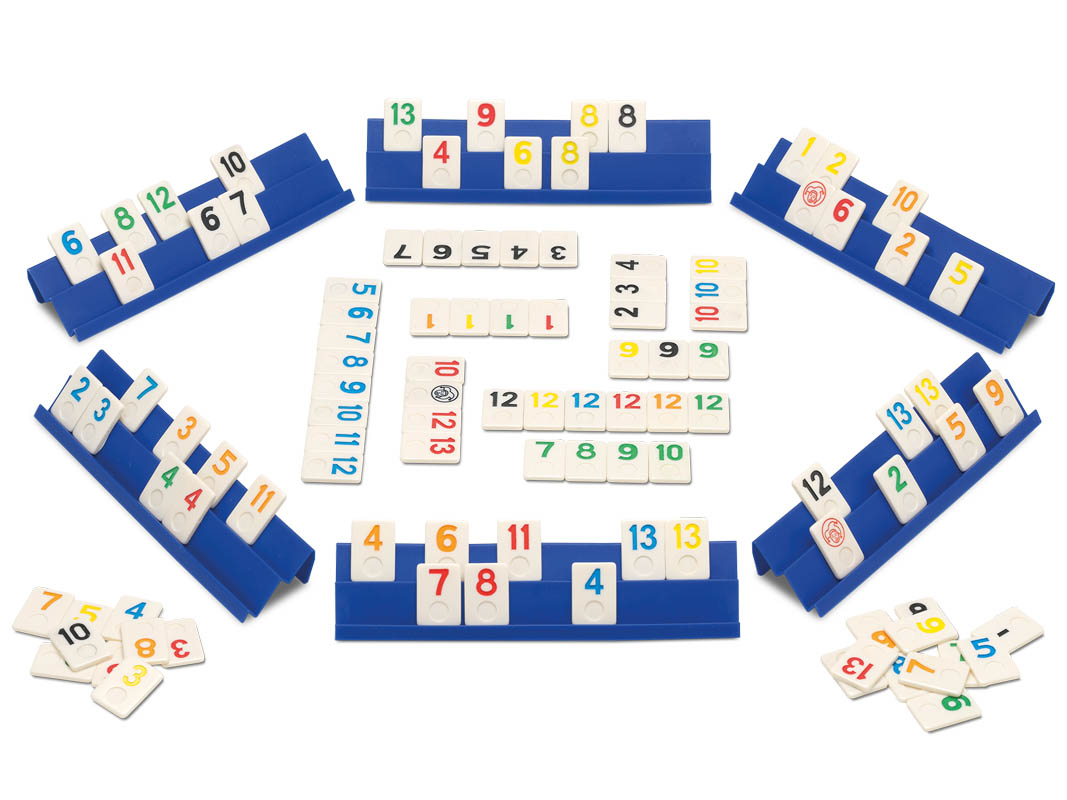 Sencillo y apasionante juego en el que cada jugador debe tratar de combinar sus fichas, haciendo agrupaciones de un mismo número en distinto color o escaleras del mismo color y conseguir quedarse sin fichas. Versión hasta 6 jugadores.