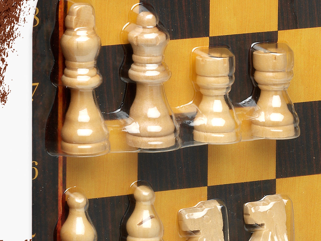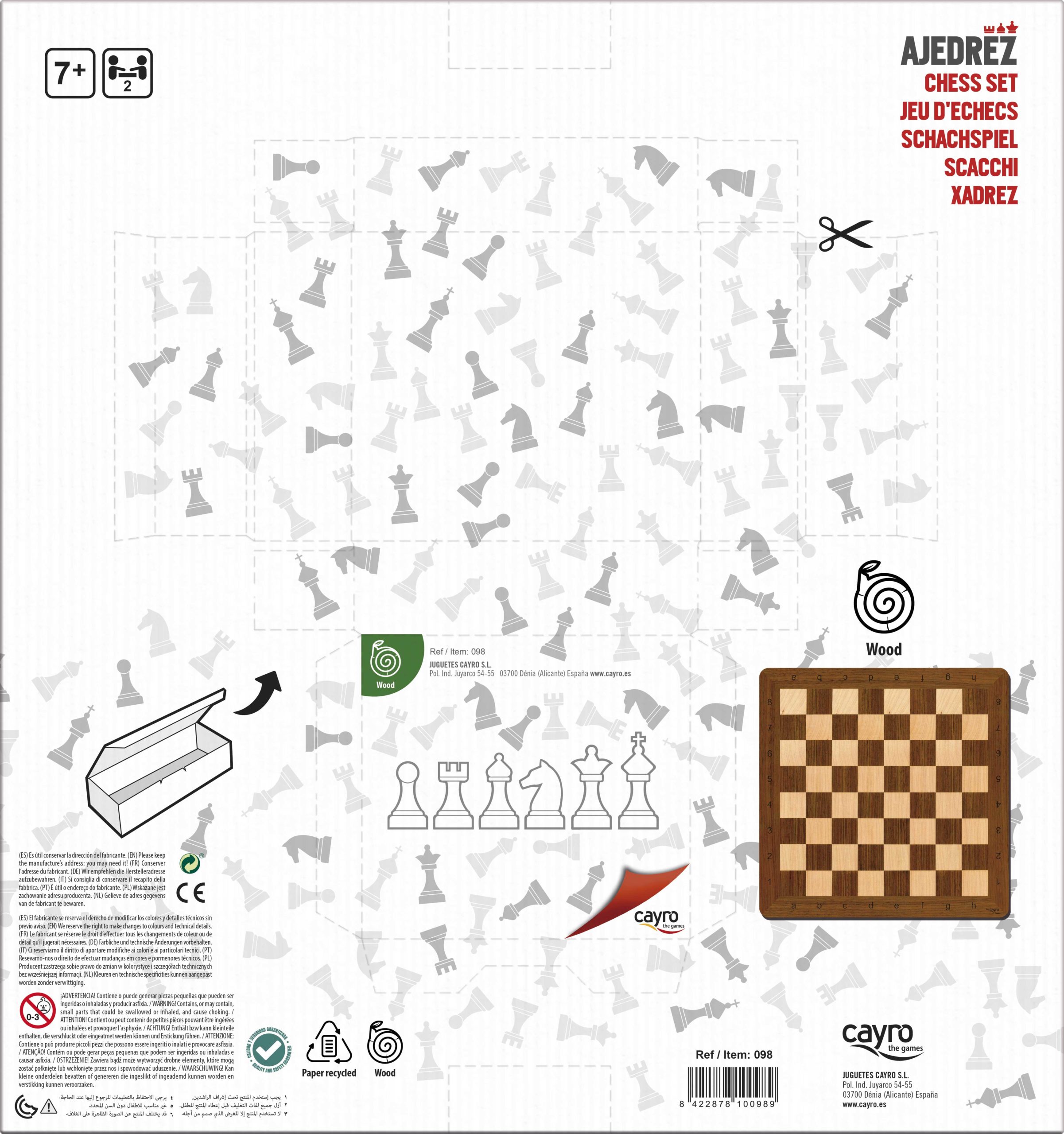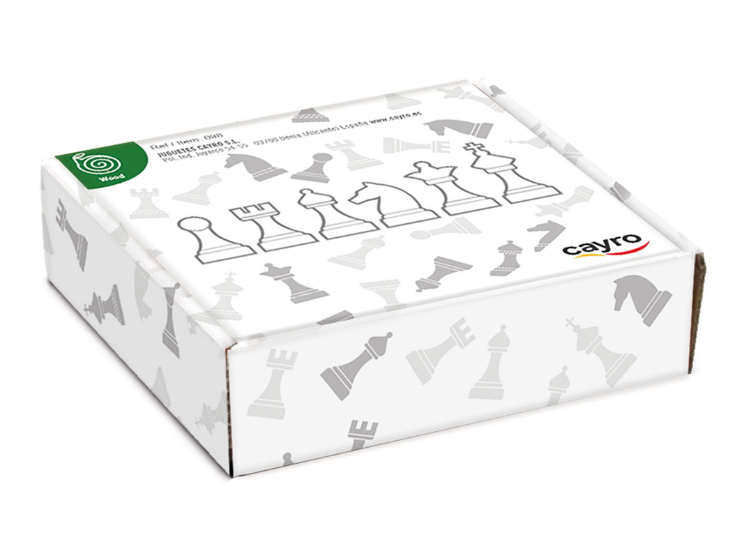 Tablero de Ajedrez con accesorios de madera. Tamaño rey: 6,35cm