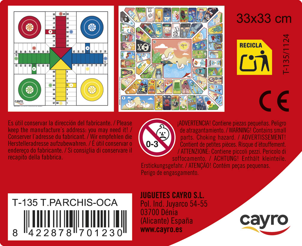 Tablero Parchís – Oca de madera 33X33 CM