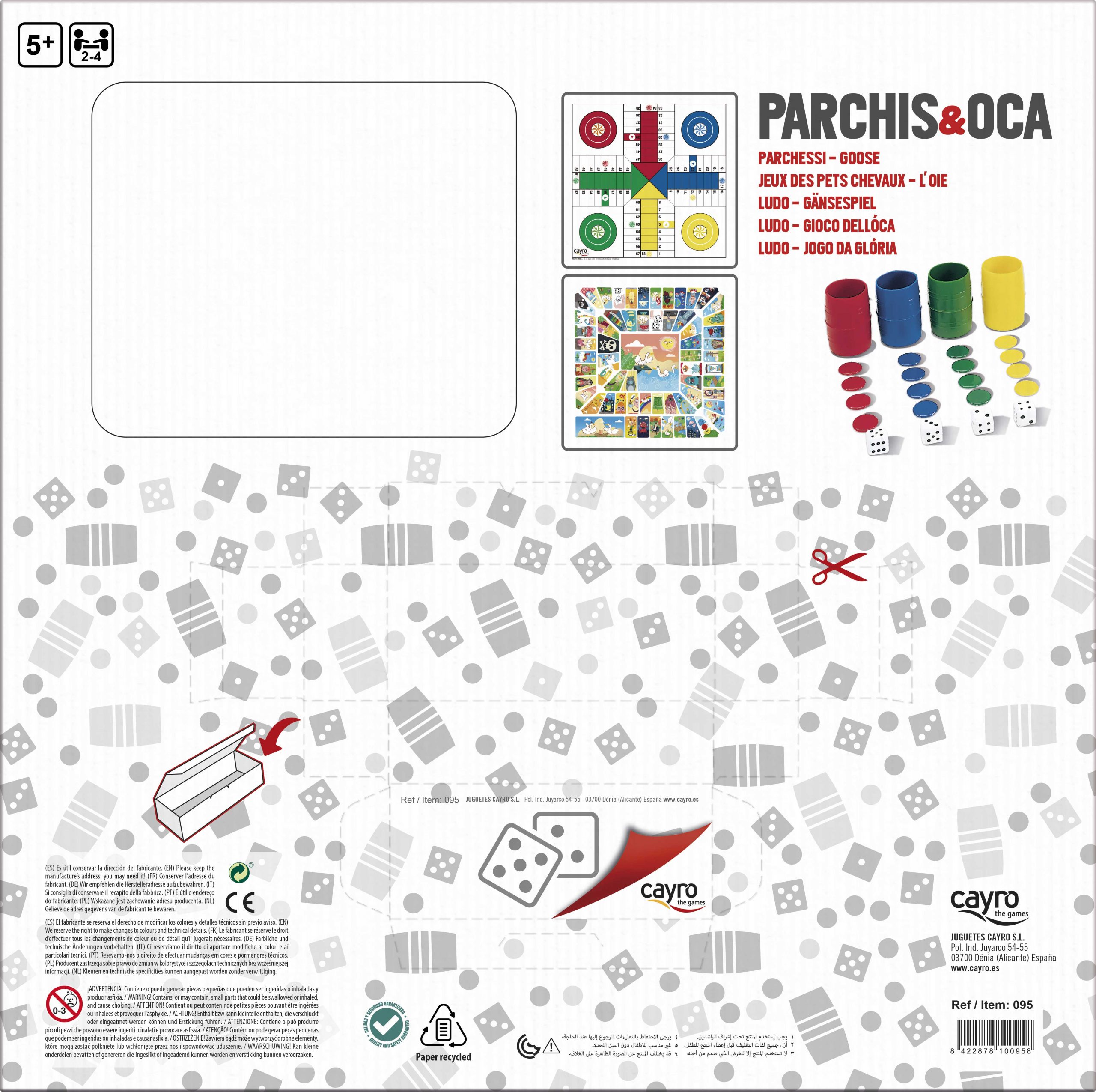 Tablero Parchís-Oca madera con accesorios 40X40 CM.