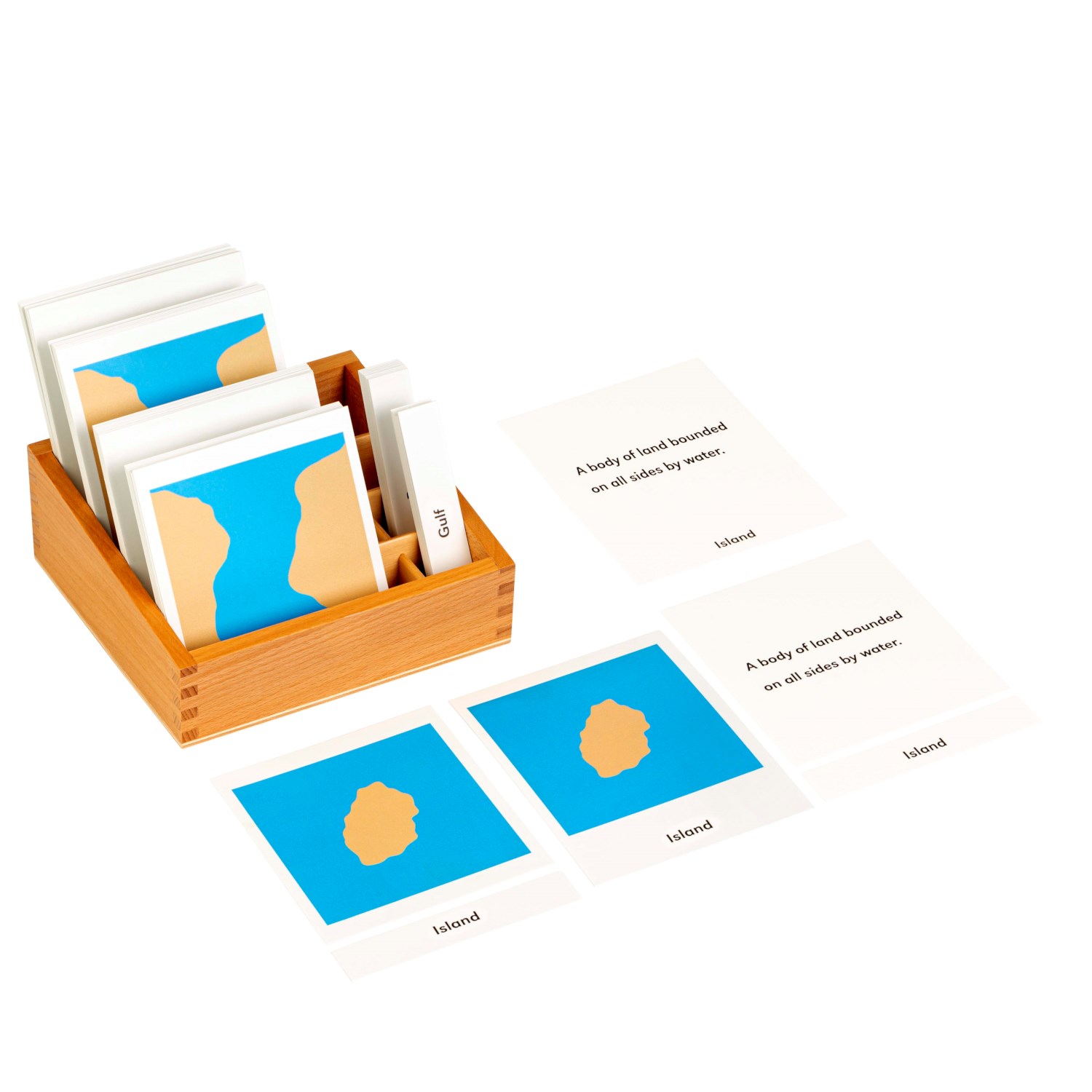 Basado en los Sets 1 y 2 de las Bandejas de Formas de Tierra y Agua (Lago, Isla, Golfo, Península, Estrecho, Istmo, Sistema de lagos, Archipiélago, Bahía, Cabo).